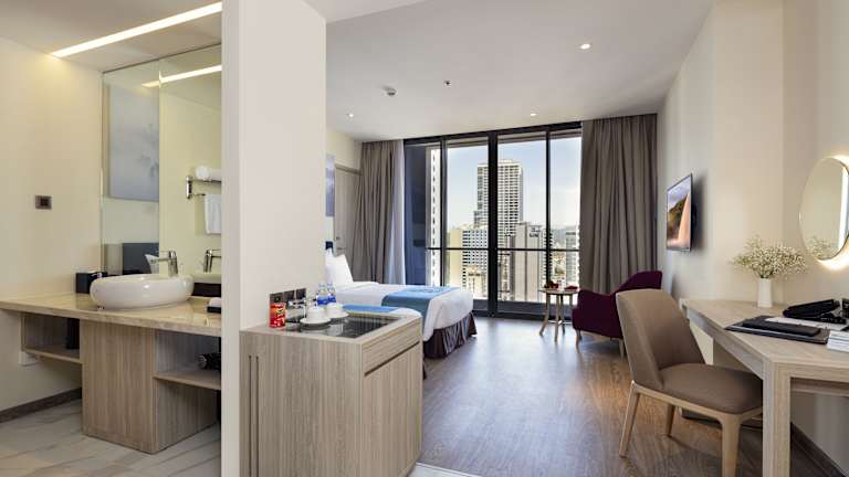 Das Hotel befindet sich in Nha Trang und bietet eine zentrale Lage. Das freundliche Personal an der Rezeption steht den Gästen gerne bei Fragen zur Verfügung. Bei Anreise mit dem Auto besteht die Möglichkeit, dieses kostenlos in einer Garage oder auf einem Parkplatz zu parkieren. Es stehen verschiedene behindertengerechte Annehmlichkeiten zur Verfügung, darunter ein Aufzug und rollstuhlgerechte Einrichtungen. WLAN ist im Hotel kostenfrei verfügbar.