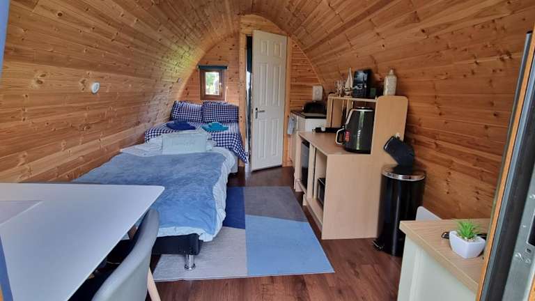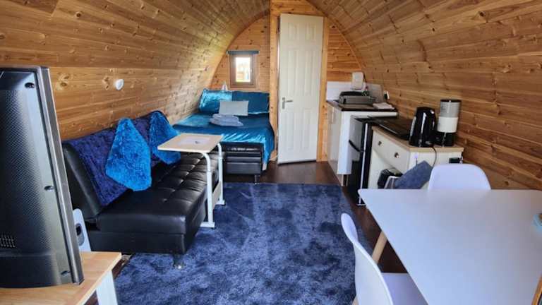 Das Chalet im The back pod verfügt über 2 gemütliche Schlafzimmer, in denen Sie sich nach einem ereignisreichen Tag ausruhen können. Es gibt auch einen Flachbild-Sat-TV für Ihre Unterhaltung. Die ausgestattete Küchenzeile enthält einen Kühlschrank und einen Backofen, so dass Sie Ihre eigenen Mahlzeiten zubereiten können. Das Chalet verfügt über ein Badezimmer mit Dusche. Handtücher und Bettwäsche werden gestellt, so dass Sie sich um nichts kümmern müssen.