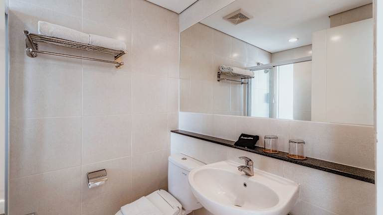 Die Zimmer sind klimatisiert und mit einem Doppelbett, einem Schreibtisch, einem Minikühlschrank sowie einer Tee-/Kaffeemaschine ausgestattet. Zu den Annehmlichkeiten gehören ein Flachbild-TV, Telefon und kostenfreies Wifi. Die Badezimmer verfügen über eine Dusche und Badewanne, zudem sind Hausschuhe vorhanden. Rollstuhlgerechte Zimmer sind ebenfalls buchbar.