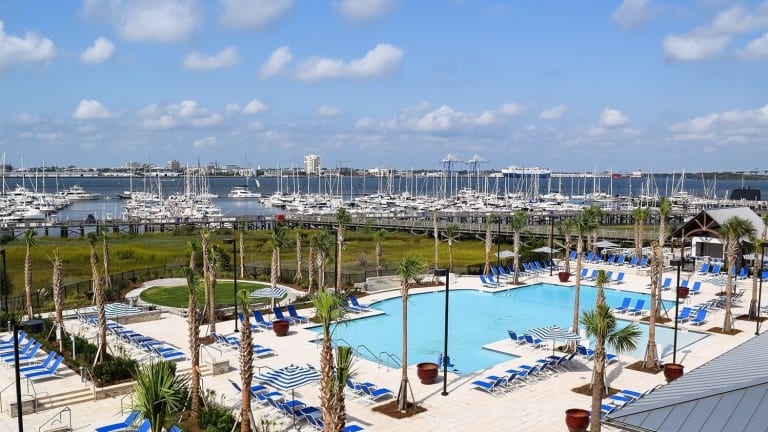 Die gastronomischen Einrichtungen umfassen die Bridge Bar, die eine Aussicht auf die USS Yorktown und Charleston bietet, sowie die Reel Bar und das Indigo Grille. Im Charleston Harbor Fish House können die Gäste nachhaltige Meeresfrüchte aus der Region unter freiem Himmel direkt am Wasser geniessen.