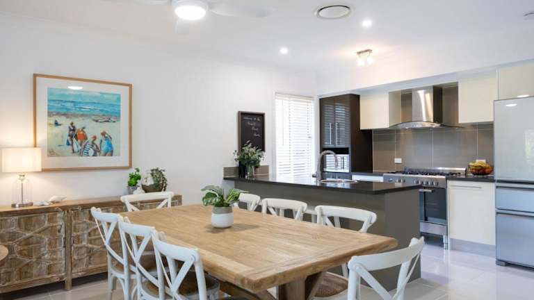The Beachhouse at Burrill bietet klimatisierte Übernachtungsmöglichkeiten in Form von einem Ferienhaus mit 3 Schlafzimmern und 2 Badezimmern. Die Unterkunft verfügt über einen Balkon, einen Garten mit Grillmöglichkeiten sowie eine Terrasse mit Blick auf den Garten. Gratis Wifi steht zur Verfügung.