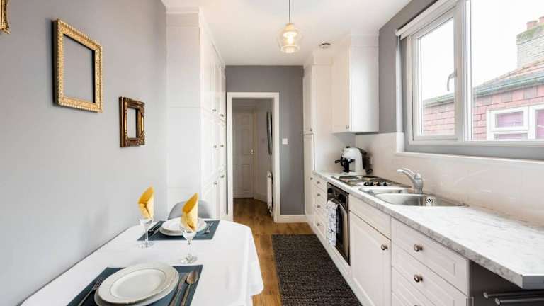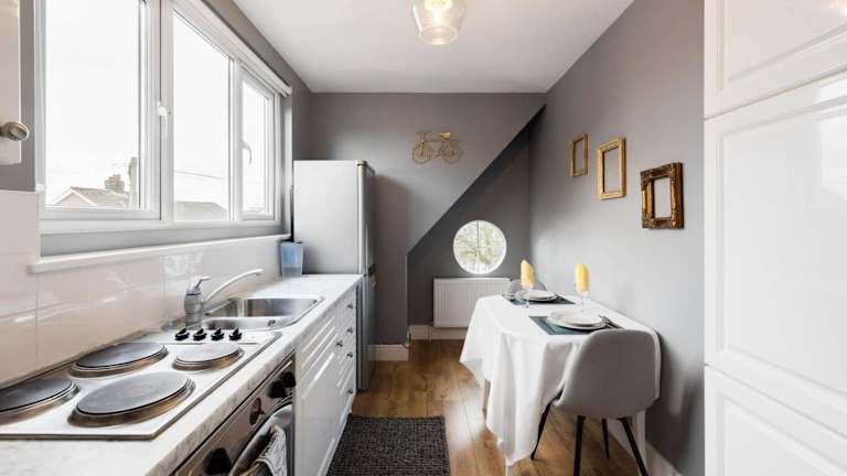 The Bluebird - One Bedroom Apartment in Watford bietet Übernachtungsmöglichkeiten in Form einer modern ausgestatteten Ferienwohnung mit Balkon und Gartenblick. Ein kostenloser Privatparkplatz steht zur Verfügung.