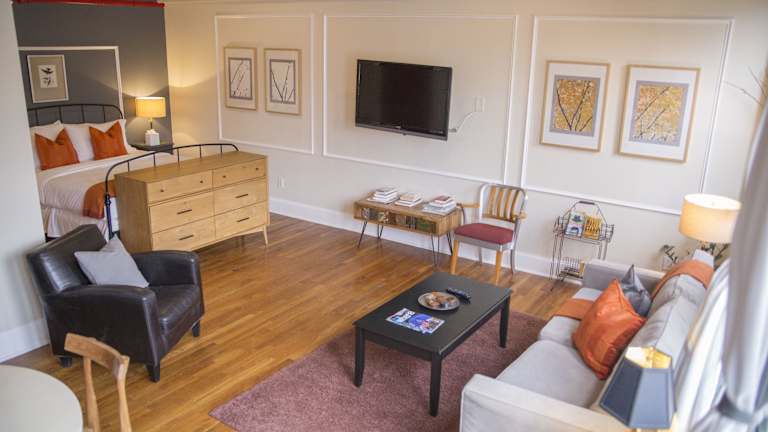 Die Zimmer sind mit Klimaanlage, Heizung und einem Ventilator ausgestattet. Ausgewählte Zimmer bieten eine Terrasse mit Blick auf Midtown Manhattan. Die Unterkünfte verfügen über ein Kingsizebett und ein Schlafsofa. Eine komplett ausgestattete Kochnische mit Kühlschrank, Herd, Mikrowelle, Tee-/Kaffeemaschine und Backofen gehört zum Standard. Des Weiteren sind eine Waschmaschine, ein Bügelset, Telefon, TV-Gerät, Radio, Wecker und kostenfreies Wifi in den Zimmern vorhanden. Die Badezimmer sind mit einer Dusche und Badewanne sowie einem Haartrockner ausgestattet. Bei Bedarf sind rollstuhlgerechte Zimmer buchbar.