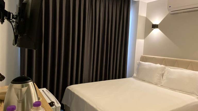 Die klimatisierten Zimmer sind mit einem Balkon mit Stadtblick ausgestattet und verfügen über einen Kleiderschrank, eine Kaffeemaschine, einen Kühlschrank, einen Safe, einen Flachbild-TV sowie ein eigenes Badezimmer mit Dusche. Bettwäsche und Handtücher sind vorhanden.