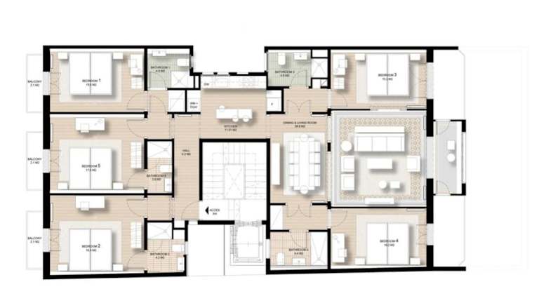 Die Unterkunft umfasst 5 separate Schlafzimmer, ein Wohnzimmer sowie eine voll ausgestattete Küche mit Kühlschrank und Geschirrspüler. Es sind 5 Badezimmer vorhanden. Ausstattung wie Klimaanlage, Handtücher und Bettwäsche werden bereitgestellt. Zudem sind WLAN und eine Veranda/Patiobereiche verfügbar.