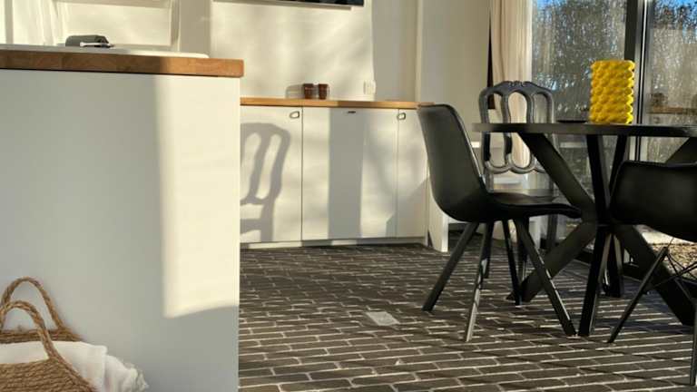 Die Ferienwohnung umfasst zwei Schlafzimmer, eine Küchenzeile mit Kühlschrank und Geschirrspüler, einen Flachbild-TV sowie einen Sitzbereich. Das Badezimmer ist mit einer Dusche ausgestattet. Handtücher und Bettwäsche sind ebenfalls vorhanden.