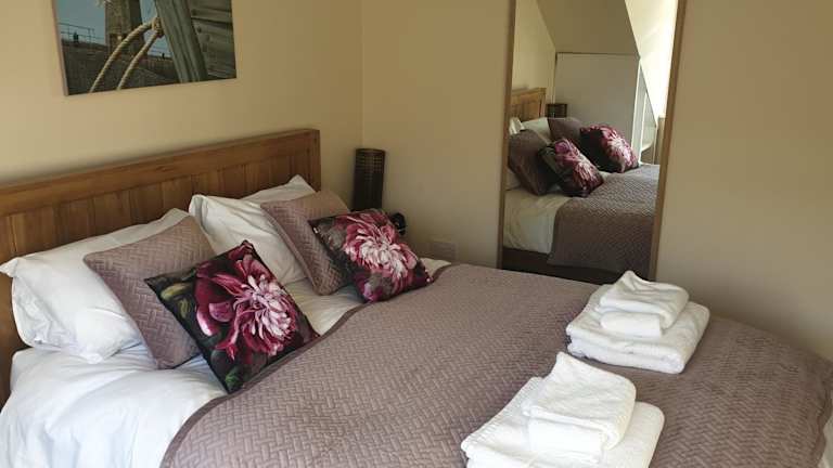 Die Ferienwohnung umfasst 2 Schlafzimmer, ein Wohnzimmer mit Flachbild-TV, eine gut ausgestattete Küche mit Kühlschrank und Geschirrspüler sowie 2 Badezimmer mit Dusche. Handtücher und Bettwäsche werden bereitgestellt.