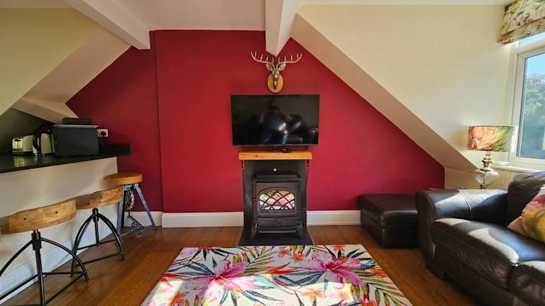 The Eaves in Lynton, Exmoor, Devon bietet eine Unterkunft mit Gartenblick, die über eine Veranda / Patio verfügt. Kostenlose Parkmöglichkeiten und WLAN sind ebenfalls vorhanden.