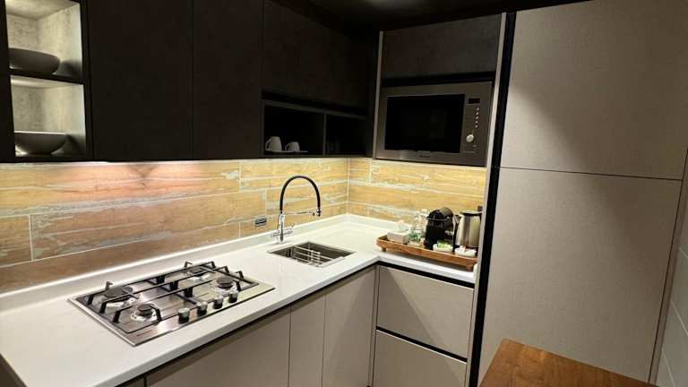 Die Wohneinheiten verfügen über eine voll ausgestattete Küche mit einem Esstisch. Lebensmittellieferungen werden ebenfalls angeboten.
