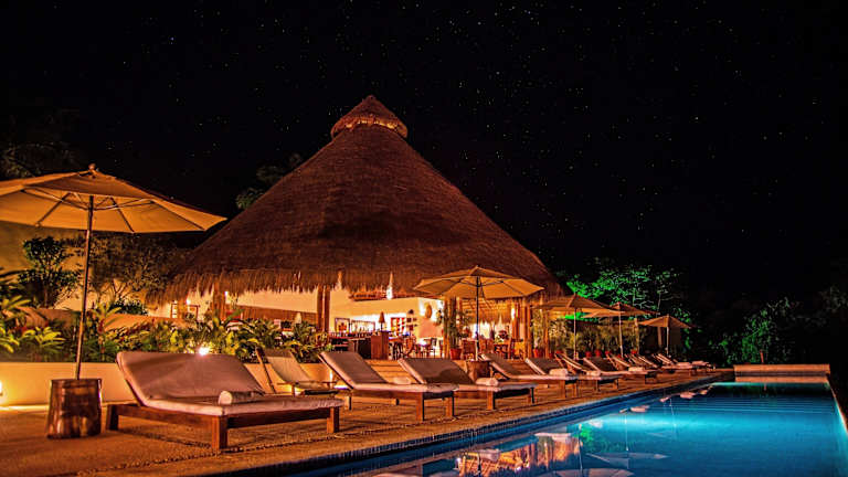 Die Bungalowanlage befindet sich rund 65 km westlich der karibischen Stadt Chetumal. Die Maya-Sehenswürdigkeit Kohunlich ist in ca. 1,6 km erreichbar. Der Fluss Hondo, der eine natürliche Grenze zu Belize darstellt, ist nach etwa 30 km in südlicher Richtung erreichbar. Der Flughafen liegt ca. 51,8 km entfernt.