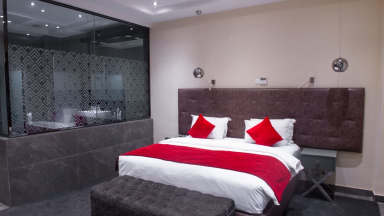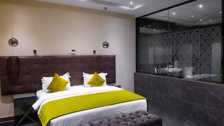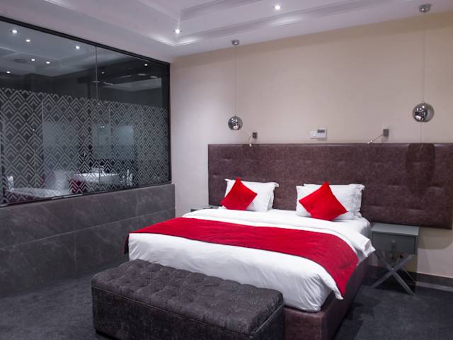 Das The Francis Hotel in Abuja bietet seinen Gästen eine komfortable Unterkunft mit erstklassigen Annehmlichkeiten wie einem Außenpool, einem Fitnesscenter und kostenfreiem WLAN. Die Zimmer sind modern eingerichtet und verfügen über eine Klimaanlage, einen Flachbild-Sat-TV und ein eigenes Bad. Genießen Sie jeden Morgen ein köstliches Frühstück und erkunden Sie die Umgebung, zu der auch der IBB Golf Club gehört. Der internationale Flughafen Nnamdi Azikiwe ist nur 29 km entfernt.