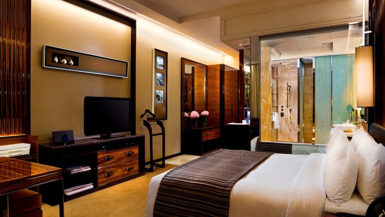 Die Zimmer sind stilvoll ausgestattet und verfügen über grosse Fenster mit Blick auf die Marina Bay oder den Civic District. Jedes Zimmer hat Annehmlichkeiten wie eine Nespresso-Kaffeemaschine, Bluetooth-Lautsprecher, Klimaanlage, einen Safe, eine Minibar in der die Auffüllung täglich erfolgt und kostenloses Wifi. Die Badezimmer sind jeweils mit einer Badewanne und Pflegeprodukten von Balmain ausgestattet.