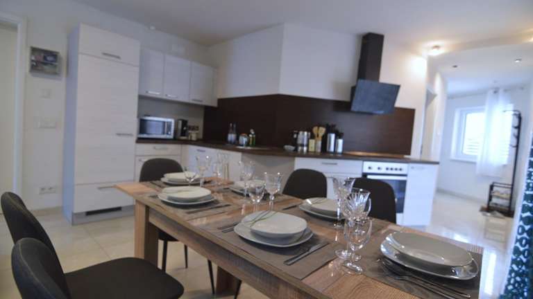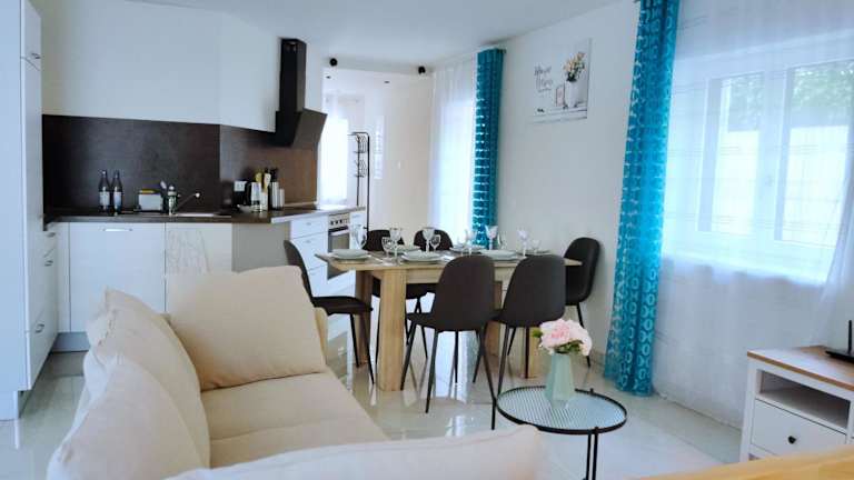 Die Ferienwohnung besteht aus 3 Schlafzimmern, einem Wohnzimmer und einer voll ausgestatteten Küche, die mit einem Kühlschrank und einer Kaffeemaschine ausgestattet ist. Zudem steht ein Badezimmer mit Badewanne und Haartrockner zur Verfügung. Handtücher und Bettwäsche werden bereitgestellt.