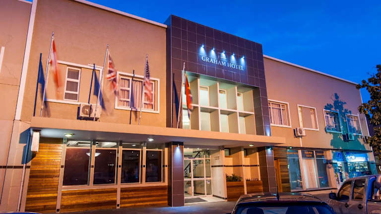 The Graham Hotel bietet Übernachtungsmöglichkeiten mit einer Bar und einem Privatparkplatz sowie klimatisierte Zimmer mit kostenlosem Wifi und eigenem Bad. Die Gemeinschaftslounge lädt zum Verweilen ein, während die rund um die Uhr besetzte Rezeption zusätzlichen Service bietet.
