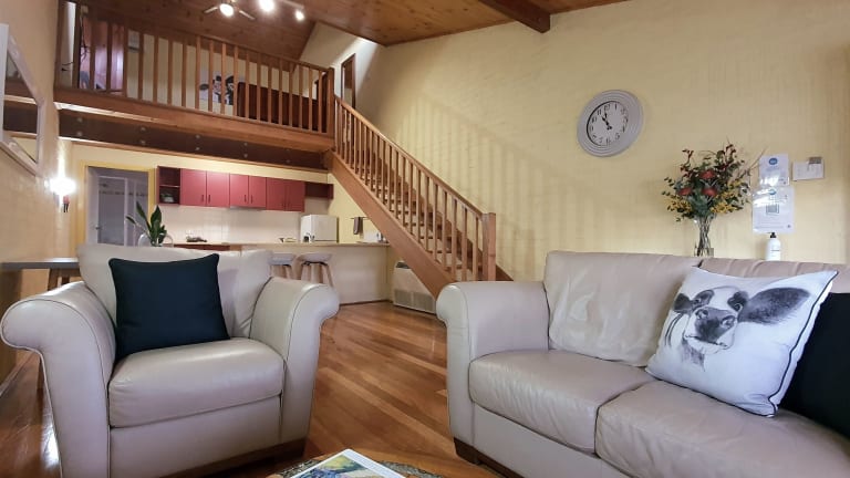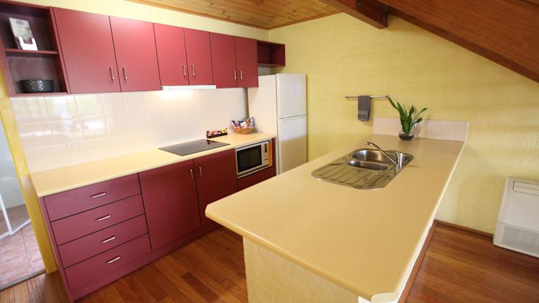 Jedes Apartment erstreckt sich über 2 Ebenen und verfügt über eine voll ausgestattete Küche, einen Essbereich, einen Flachbild-TV und einen DVD-Player.