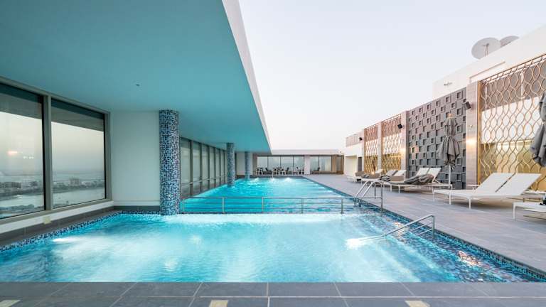 Das Hotel befindet sich im Zentrum von Manama, nur 350 m vom hoteleigenen Strand entfernt und etwa 9,4 km vom Flughafen entfernt. Die Entfernung zum Stadtzentrum beträgt ca. 18 km und der Golfplatz liegt ca. 34 km entfernt. Eine gute Anbindung an öffentliche Verkehrsmittel ist gegeben.