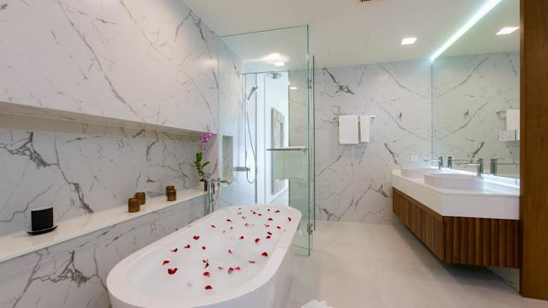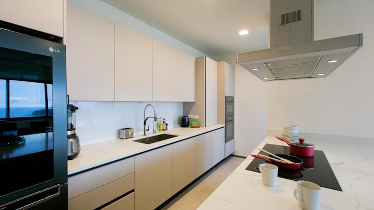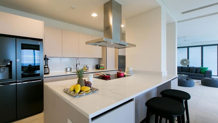 The Heights Penthouse A5 bietet eine klimatisierte Unterkunft mit 3 Schlafzimmern, einem Wohnzimmer, einem Flachbild-TV und einer gut ausgestatteten Küche. Zusätzliche Annehmlichkeiten umfassen einen Innenpool, einen Fitnessraum sowie Grillmöglichkeiten und einen Zimmerservice. Kostenfreies WLAN und eine Privatparkiermöglichkeit stehen zur Verfügung. Die Terrasse mit Blick aufs Meer ist ein weiteres Highlight der Unterkunft.