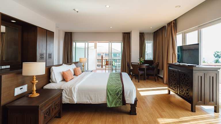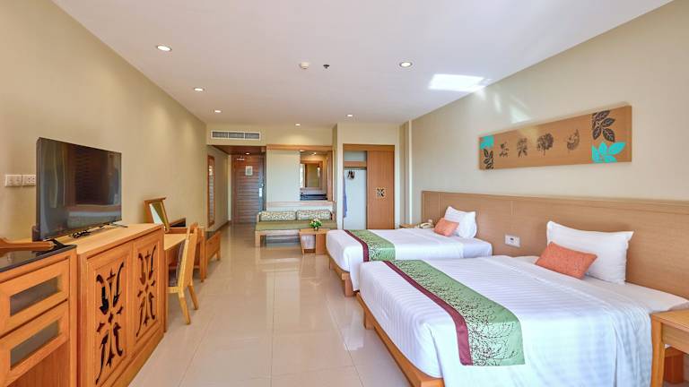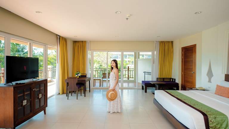 Die geräumigen Zimmer sind im modernen thailändischen Stil eingerichtet und verfügen über Holzfussböden. Jedes Zimmer ist mit einem Flachbild-TV, einem DVD-Player sowie Kaffee- und Teezubehör ausgestattet. Die eigenen Badezimmer sind mit einer Badewanne und einer Dusche ausgestattet.