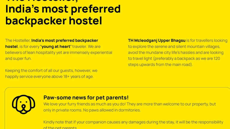 The Hosteller Mcleodganj, Upper Bhagsu bietet Übernachtungsmöglichkeiten ausschliesslich für Erwachsene und wurde im Jahr 2019 erbaut. Die Unterkunft überzeugt mit einem gemütlichen Garten, einer Gemeinschaftslounge und einem Restaurant. Es handelt sich um ein haustierfreundliches Hostel, das kostenloses Wifi zur Verfügung stellt.
