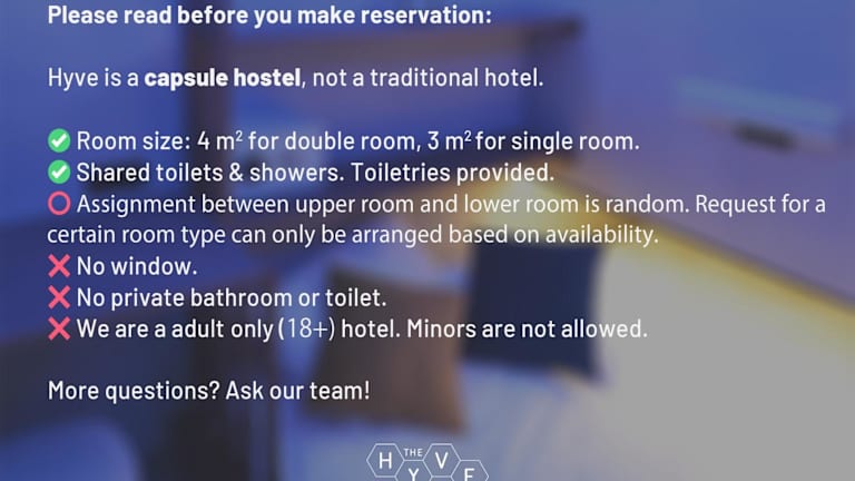 Das The Hyve Capsule hostel Amsterdam ist eine Nichtraucherunterkunft, die ein modernes Kapselkonzept bietet. Die Rezeption ist rund um die Uhr besetzt, und es werden Englisch sowie Niederländisch gesprochen. Die Unterkunft richtet sich ausschließlich an Erwachsene und hat spezifische Richtlinien, die Junggesellenabschiede sowie ähnliche Feierlichkeiten ausschließen. Die Unterkunft bietet auch Annehmlichkeiten wie eine Videoüberwachung in den Gemeinschaftsbereichen.