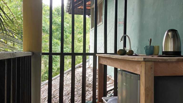 Die Zimmer in The Jungle House sind mit einem Schreibtisch, Bettwäsche und einem Balkon mit Flussblick ausgestattet. Jedes Zimmer verfügt über einen Wasserkocher und ein eigenes Badezimmer mit Dusche. Einige Zimmer bieten zusätzlich eine Küchenzeile mit Kühlschrank sowie einen Sitzbereich.