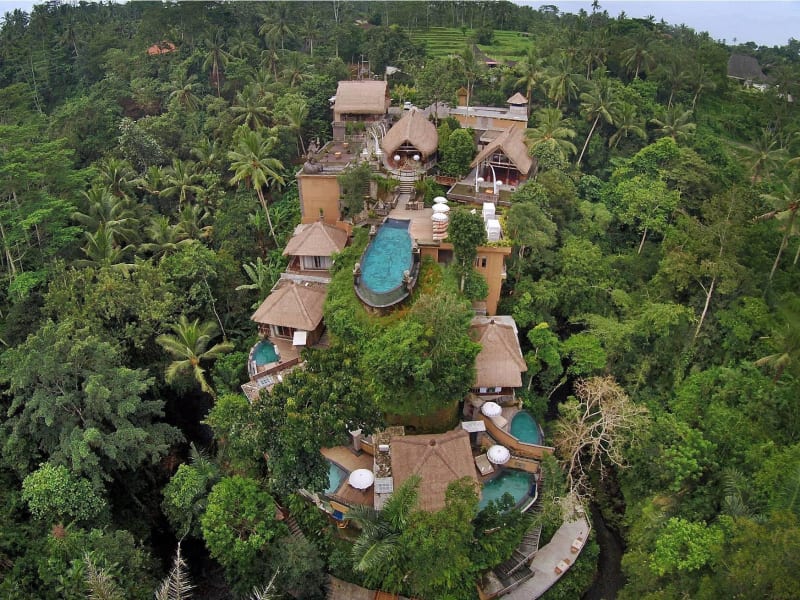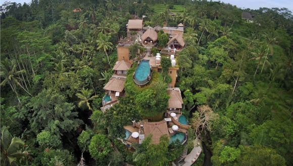 The Kayon resort is perched on Ubud hills side, surrounded with holy Petanu River and lush tropical rainforest gives a relaxing vibe. Kayon means tree of life creations and secret that grows from earth towards heaven. Located only ten minutes drive from Ubud center, this enchanting five star boutique resort is designed in complete harmony with nature. Decorated with Ramayana story relief on stone wall creates a romantic ambience. The Children below 15 years old is not permitted at The Kayon Resort Ubud due our resort location is on the cliff and our concept is set for Honeymooner, Romance, Healing and Relaxation. At The Kayon Resort, where the Ubud life Secret discovered and romantic love story created, with the genuine Balinese hospitality.