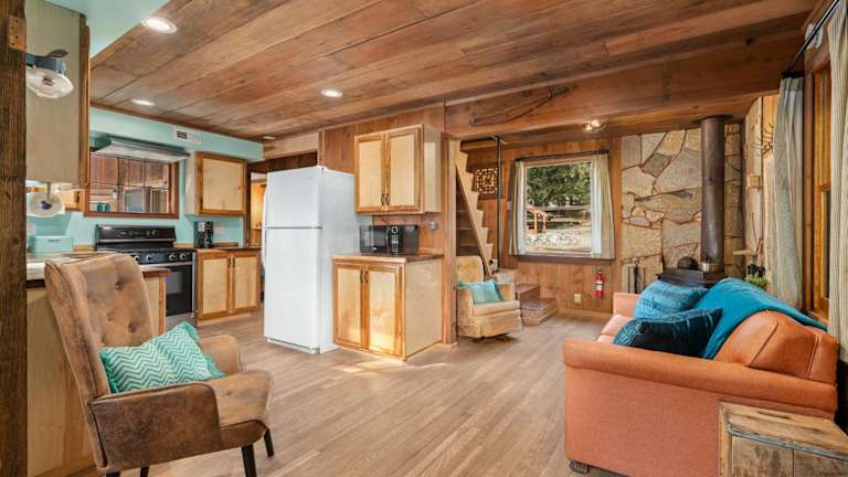 Das The Knotty Cabin befindet sich in Wilsonia, in der Nähe des Kings Canyon National Parks. Die Umgebung bietet vielfältige Möglichkeiten zum Wandern, Skifahren und Angeln.