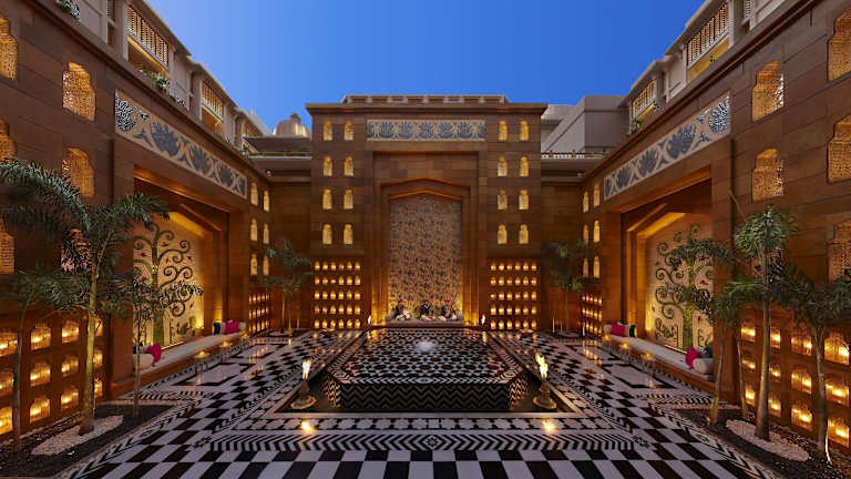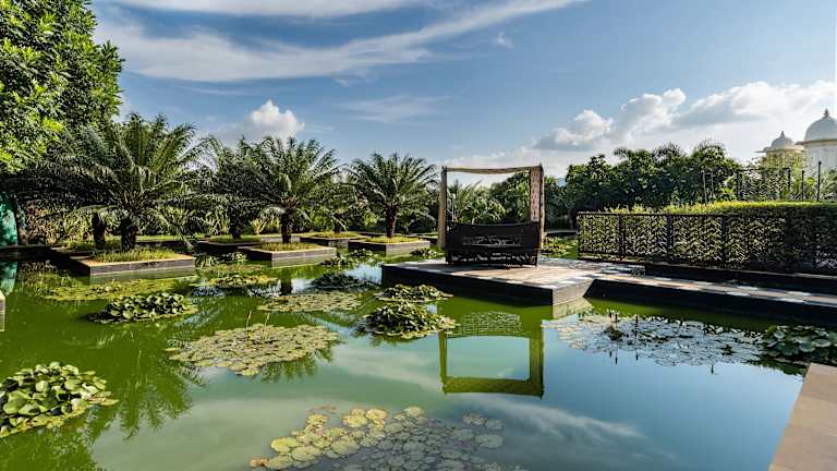 Das Leela Palace Udaipur befindet sich in der Stadt der Seen, im malerischen Umfeld des Lake Pichola. Es liegt innerhalb von 4 km vom Stadtzentrum und dem City Palace Museum, und ist in einer Entfernung von 45 Minuten Fahrt vom Flughafen Maharana Pratap gelegen.