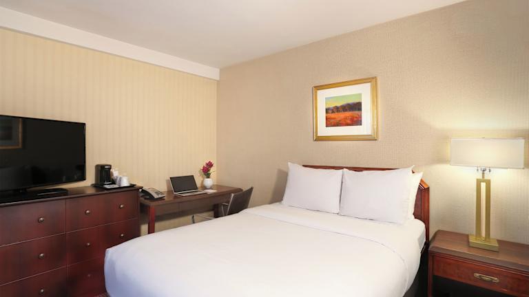 Das Hotel bietet insgesamt 658 Zimmer und 7 Suiten auf 22 Etagen. Jedes Zimmer ist mit einem Schreibtisch ausgestattet und einige Zimmer bieten auch einen Sitzbereich und einen atemberaubenden Blick auf die Skyline. Das Hotel verfügt über eine Vielzahl von Annehmlichkeiten, darunter ein beheizter Innen- und Außenpool, kostenfreies WLAN im öffentlichen Bereich und ein 24-Stunden-Zimmerservice.