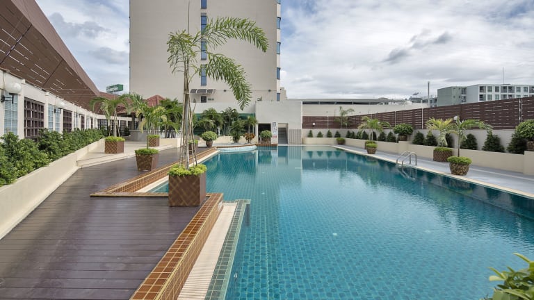 Das Maruay Garden Hotel liegt in Bangkok und ist nur 15 Fahrminuten vom Flughafen Don Muang entfernt. In nur 10 Minuten erreichen Sie mit dem Auto Unterhaltungsmöglichkeiten wie das Cineplex Ratchayothin und das Kaufhaus Ladprao Central. Die Bahnhöfe Mochit (Skytrain) und Chatuchak (MRT) sind ebenfalls in der Nähe und bieten eine bequeme und kostengünstige Möglichkeit, die Stadt zu erkunden.