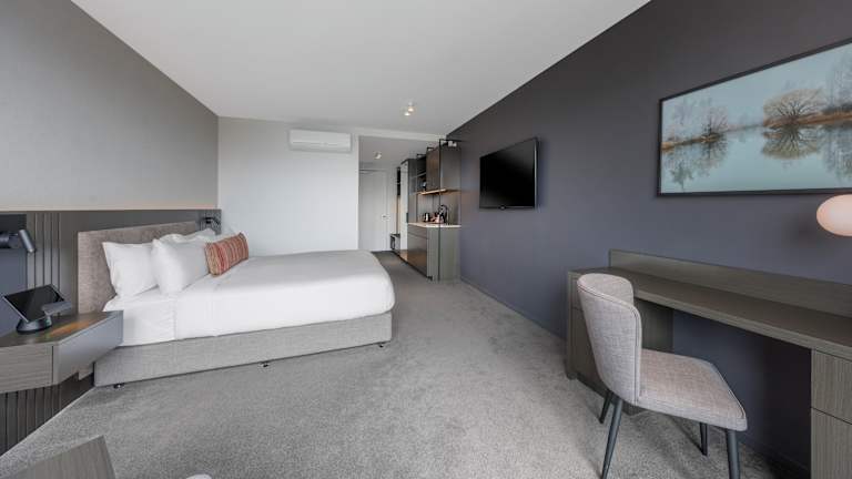 Die Zimmer sind klimatisiert und mit einem Sitzbereich, einem Flachbild-TV, einem Safe sowie einem eigenen Badezimmer mit Dusche und kostenlosen Pflegeprodukten ausgestattet. In einigen Zimmern sind ein Balkon und Bergblick vorhanden. Die Standardausstattung umfasst ein Doppelbett oder Kingsize-Bett, eine Kochnische mit Mikrowelle und Wasserkocher, sowie kostenfreies WLAN. Zur Grundausstattung gehören auch Bettwäsche und Handtücher.