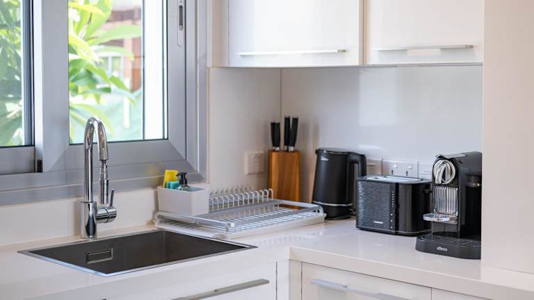 In der voll ausgestatteten Küche des Ferienhauses können Sie Ihre eigenen Mahlzeiten zubereiten und auf der Terrasse mit Meerblick genießen. Alternativ finden Sie in der Nähe des The MedView Garden House auch Restaurants und Cafés, in denen Sie lokale Spezialitäten probieren können.