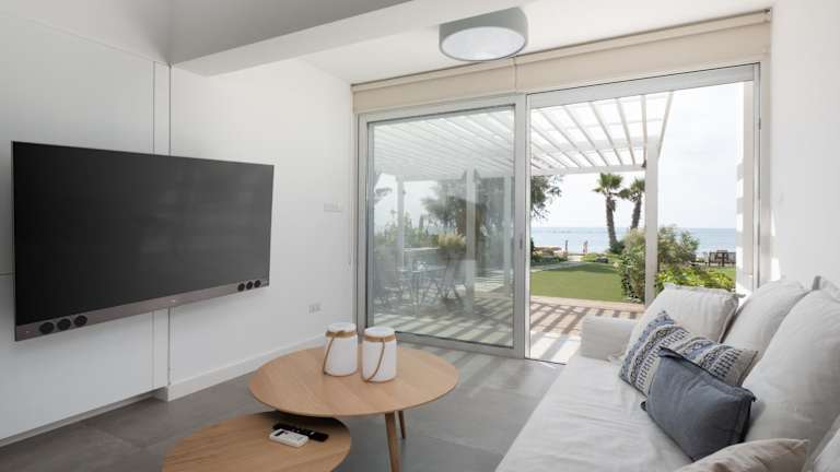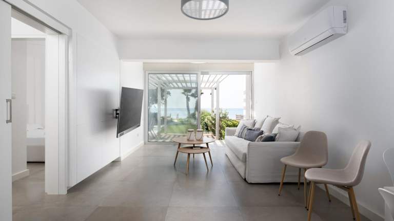 Das klimatisierte Ferienhaus im The MedView Garden House verfügt über zwei Schlafzimmer, ein Wohnzimmer und eine voll ausgestattete Küche. Es bietet Platz für bis zu vier Personen und ist ideal für Familien oder Gruppen von Freunden. Die Einrichtung ist komfortabel und modern, und die Terrasse bietet einen atemberaubenden Blick auf das Meer. Handtücher und Bettwäsche werden gestellt, und WLAN ist in der gesamten Unterkunft kostenlos verfügbar.