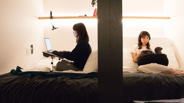 Die Kapsel-Unterkünfte sind mit Serta-Matratzen ausgestattet, die sich als Sofa zurücklehnen lassen. Handtücher und kostenlose Pflegeprodukte sind vorhanden, ebenso Stauraum unter dem Bett. In einigen Zimmern befindet sich ein Projektor für die Verbindung mit persönlichen Geräten. Es steht ein Gemeinschaftsbad mit Badewanne und Dusche zur Verfügung. Pyjamas können gegen Aufpreis gemietet werden.