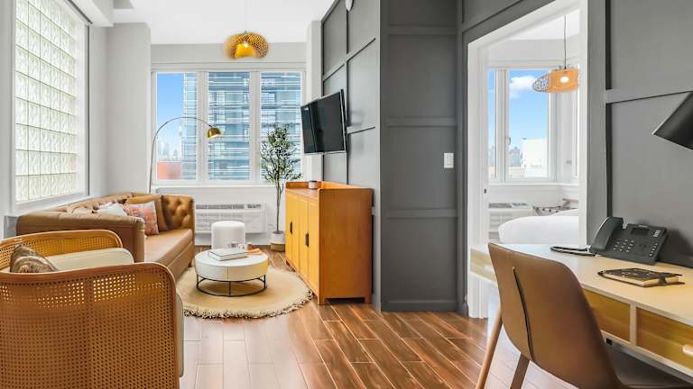 Die Unterkunft The Modernist Hotel liegt im Zentrum von Long Island City, nur wenige Kilometer von Sehenswürdigkeiten wie der St. Patrick's Cathedral und dem Museum of Modern Art entfernt. Der Flughafen LaGuardia befindet sich in einer Distanz von 5 km, was die Erreichbarkeit fördert.
