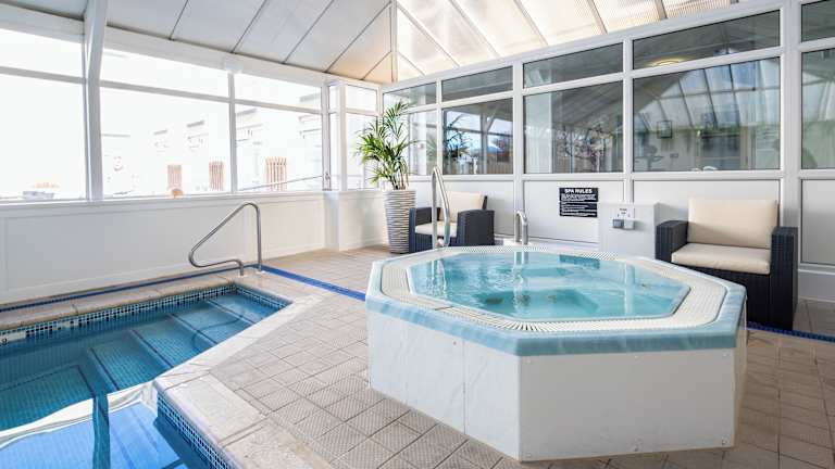 Das Hotel bietet eine Poolanlage mit einem Innenpool und einem Aussenpool. Die Sonnenterrasse lädt zum Entspannen ein, während der Whirlpool im Badebereich für wohlige Entspannung sorgt. Aktive Gäste können verschiedene Sportarten ausüben, darunter Velo fahren, Golfen, Aerobic und Fitness im Fitnessraum. Zudem stehen eine Sauna und ein Dampfbad zur Verfügung.