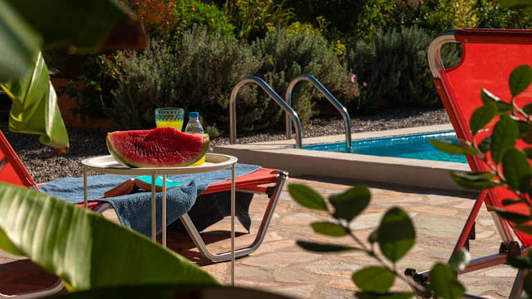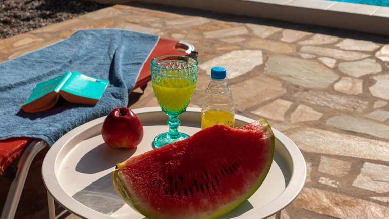 Die Villa verfügt über 3 Schlafzimmer, ein Wohnzimmer und eine voll ausgestattete Küche mit Kühlschrank und Kaffeemaschine. Zudem sind 2 Badezimmer mit Dusche und Haartrockner vorhanden. Die Klimaanlage sorgt für eine angenehme Bequemlichkeit. Handtücher und Bettwäsche werden zur Verfügung gestellt.
