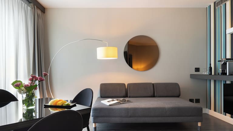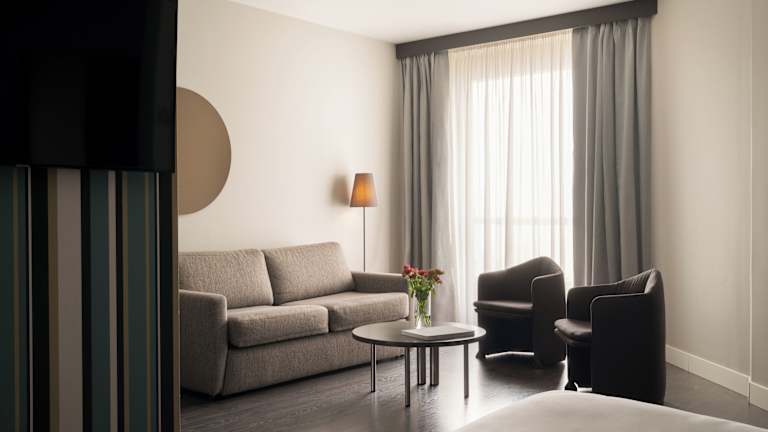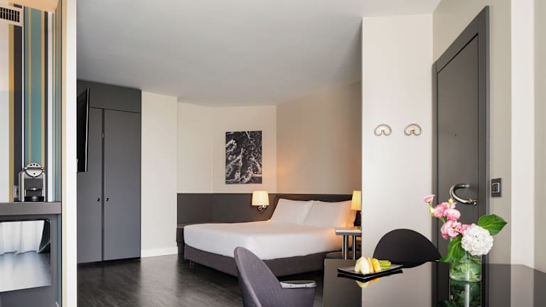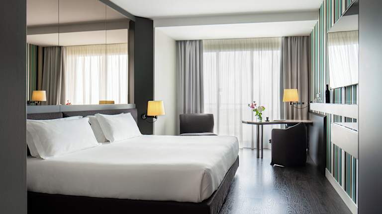 Die Zimmer sind modern eingerichtet und verfügen über Klimaanlage, einen TV mit Satelliten- und Pay-per-view-Kanälen sowie einen Balkon in den meisten Zimmern. Zur Ausstattung gehören ein Doppelbett, eine Minibar, ein Safe, ein Schreibtisch, ein Haartrockner sowie ein Badezimmer mit Dusche oder Badewanne. Das Hotel bietet rollstuhlgerechte Zimmer an.