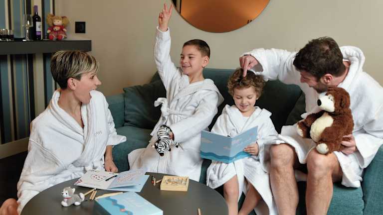 Das Hotel verfügt über einen modernen Wellnessbereich mit einem beheizten Außenpool, einem Indoorpool, einem Fitnessraum, einer Sauna, einem Dampfbad und einem Whirlpool. Es gibt außerdem einen Miniclub für Kinder und die Möglichkeit, Fahrräder zu mieten, um die Umgebung zu erkunden.