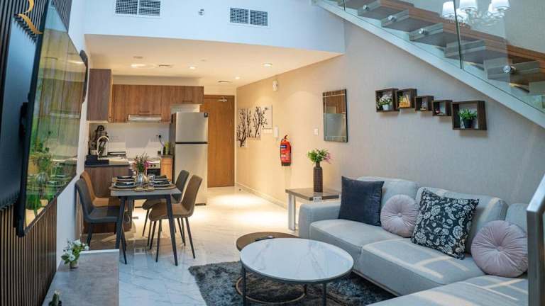 Die Unterkunft Masdar City Mirage Oasis bietet Übernachtungsmöglichkeiten in Form eines 2-Raum-Duplex, das mit einem Klimaanlage ausgestattet ist. Die Gestaltung umfasst einen Balkon sowie eine Terrasse mit Gartenblick und Zugang zu einem Aussenpool. Es wird darauf hingewiesen, dass Junggesellen- oder Junggesellinnenabschiede sowie ähnliche Feiern in dieser Unterkunft nicht gestattet sind. Der Check-in ist ab 16:00 Uhr und der Check-out bis 12:00 Uhr möglich.