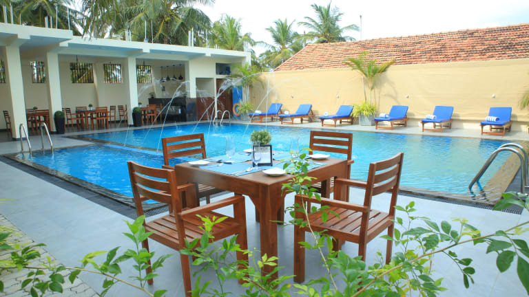 The Ocean Pearl Hotel Negombo bietet eine gepflegte Gartenlandschaft, eine gemütliche Gemeinschaftslounge sowie eine einladende Terrasse. Die Unterkunft umfasst einen Aussenpool und klimatisierte Zimmer mit kostenlosem Wifi und eigenem Badezimmer. Zudem beinhaltet das Angebot einen Zimmerservice, eine rund um die Uhr besetzte Rezeption und Währungsumtausch.