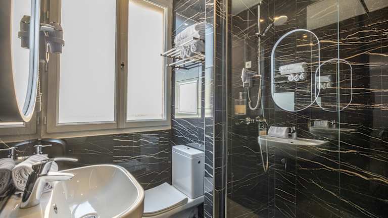 Die Zimmer sind mit liebevollen Annehmlichkeiten ausgestattet, darunter ein Doppelbett oder Queensize-Bett, Balkon oder Terrasse in den meisten Zimmern. Ein Safe, ein Schreibtisch, ein TVgerät, ein Telefon und kostenloses WiFi stehen zur Verfügung. Die Badezimmer sind mit einer Dusche und kostenfreien Pflegeprodukten ausgestattet. Für zusätzlichen Komfort sorgt ein Bügelset.