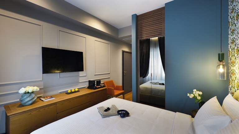 Die Zimmer sind klimatisiert und verfügen über einen Kleiderschrank, eine Kaffeemaschine, einen Kühlschrank sowie einen Safe. Jedes Zimmer ist mit einem Flachbild-TV und einem eigenen Badezimmer mit Dusche ausgestattet. Einige Zimmer bieten einen Balkon oder einen Stadtblick. Die Ausstattung umfasst auch Bettwäsche und Handtücher.