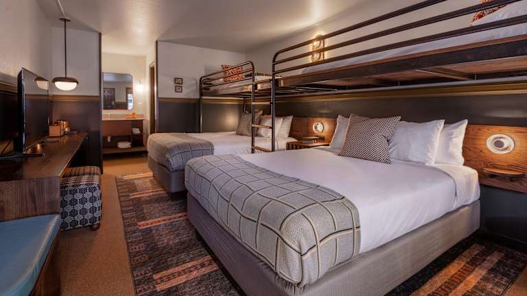 Die Zimmer in der Ozarker Lodge sind traditionell eingerichtet und verfügen über kostenfreies Wifi sowie Kabel-TV. Die Suiten bieten zusätzliche Annehmlichkeiten wie Kühlschrank, Haartrockner, Bügeleisen/-brett und kostenfreie Pflegeprodukte sind auf Anfrage erhältlich.