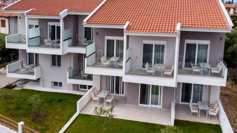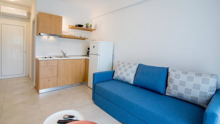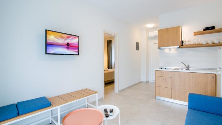Die Apartments sind mit einem Sitzbereich, einem Satelliten-Flachbild-TV und einer voll ausgestatteten Küchenzeile mit Kühlschrank und Herdplatte ausgestattet. Jedes Apartment bietet ein eigenes Badezimmer mit Dusche und Haartrockner. Es gibt ebenfalls eine Sonnenterrasse und Gartenmöbel.