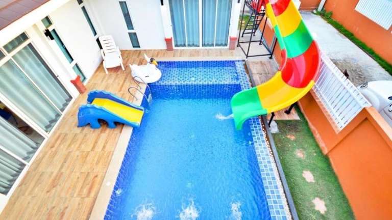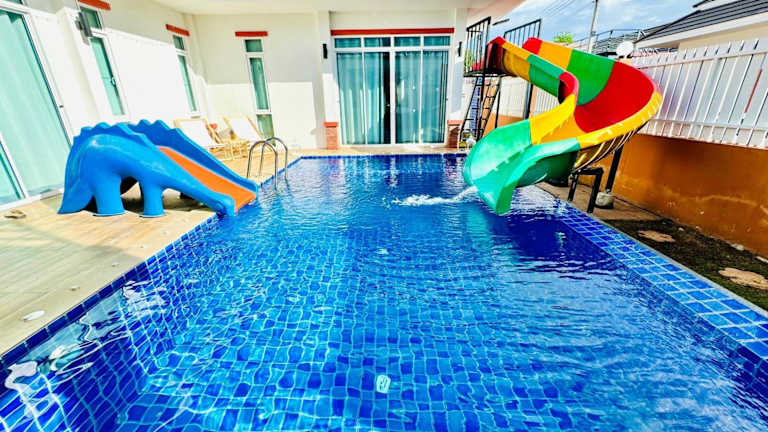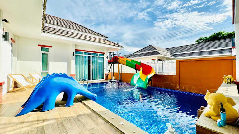 THE PARAGON POOL VILLA Huahin bietet Übernachtungsmöglichkeiten mit einem eigenen Pool, Balkon und Gartenblick. Die Villa ist klimatisiert und umfasst 3 Schlafzimmer, eine Küche sowie 3 Badezimmer. Ein Flachbild-TV ist ebenfalls vorhanden. Die Unterkunft wird von einem privaten Gastgeber geleitet und gestattet Haustiere.