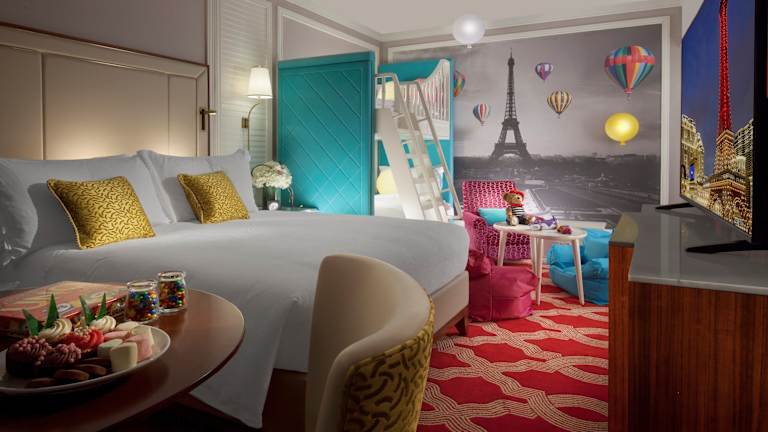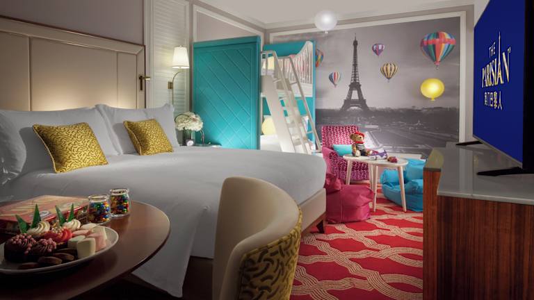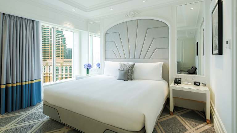 Die Zimmer im The Parisian Macao sind modern und komfortabel gestaltet mit einem zeitgenössischen französischen Flair. Jedes Zimmer ist mit einer Klimaanlage, einem Safe und einer Minibar ausgestattet. Die Badezimmer bieten eine Kombination aus Badewanne und separater Dusche sowie hochwertige Pflegeprodukte. Zu den Annehmlichkeiten zählen auch ein 55-Zoll-Flachbildfernseher, kostenloses Wifi und Hausschuhe, um den Aufenthalt noch angenehmer zu gestalten.