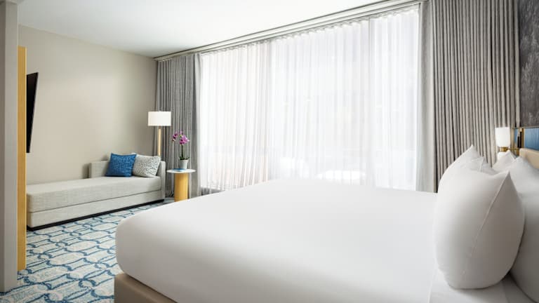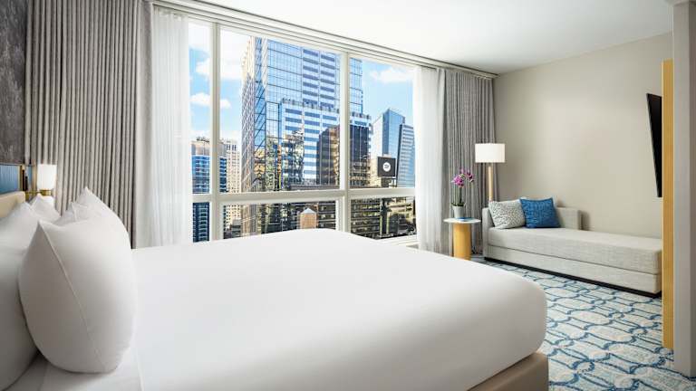 Die Zimmer sind mit einem Doppelbett, einem Queensize-Bett oder einem Kingsize-Bett ausgestattet und verfügen über eine Klimaanlage sowie eine Heizung. Zu den Annehmlichkeiten zählen ein Safe, eine Minibar, ein Kühlschrank, ein Schreibtisch, Sat-TV und kostenloses Wifi. Die Badezimmer sind mit einer Dusche und einer Badewanne ausgestattet und bieten Bademäntel sowie Kosmetikartikel. Es sind rollstuhlgerechte Zimmer mit barrierefreien Badezimmern verfügbar.