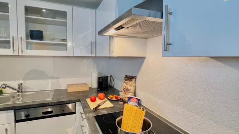 Die Ferienwohnung umfasst 1 Schlafzimmer, eine gut ausgestattete Küche mit Kühlschrank und Geschirrspüler sowie einen Flachbild-TV und Sitzbereich. Das Badezimmer ist mit einer Dusche ausgestattet. Handtücher und Bettwäsche werden bereitgestellt. Zudem steht eine Terrasse zur Verfügung, die den Gästen einen gemütlichen Platz im Freien bietet.