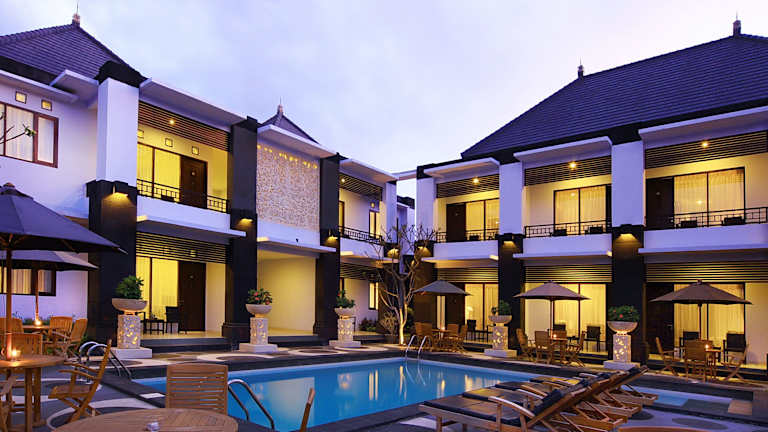 Das The Radiant Hotel & Spa bietet geräumige und klimatisierte Zimmer, einen Außenpool und ein Restaurant. Das Hotel befindet sich in der Nähe von Kuta Beach und bietet einen kostenpflichtigen Shuttleservice zum Discovery Shopping Mall und zum Flughafen. Die Zimmer sind mit modernen Annehmlichkeiten wie Kabel-TV, Minibar und Tee-/Kaffeekocher ausgestattet. Das Hotel bietet auch Massagen und kostenfreies WLAN an. Das Frühstück wird im Poolrestaurant serviert und es werden lokale und internationale Gerichte angeboten. Das Hotel liegt in der Nähe von Einkaufsmöglichkeiten, Kinos und Wasserparks.
